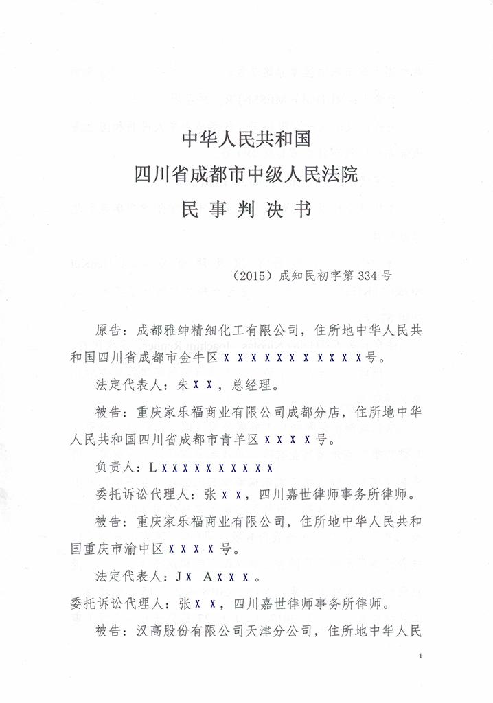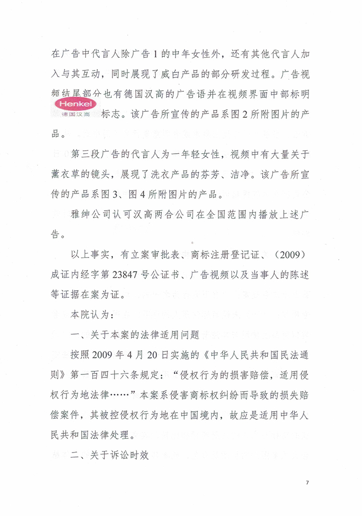 2017年12月8日 成都市中级人民法院《民事判决书》(2015)成知民初字第334号成都雅绅公司诉德国汉高股份有限公司及两合公司(HenKeL AG & CO.KGaA)等商标侵权案件维权败诉。