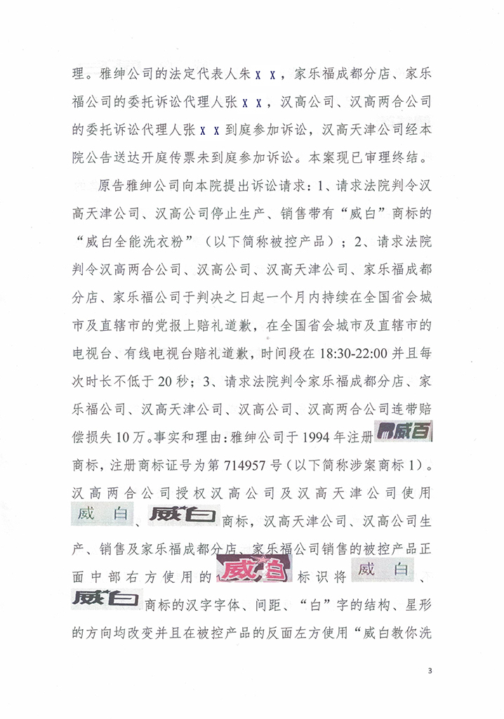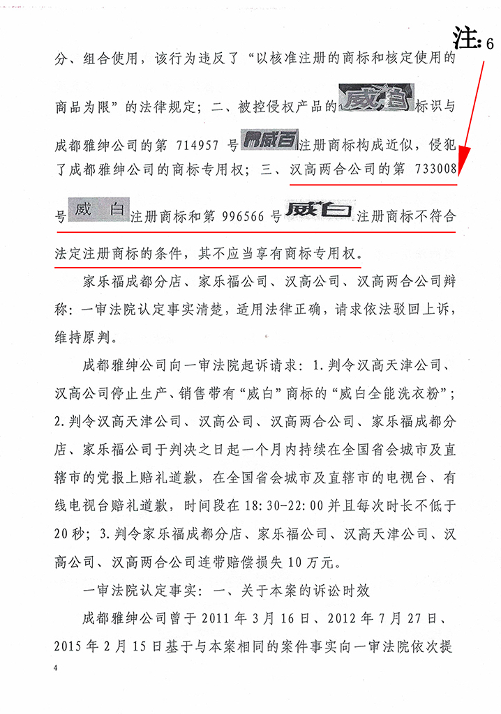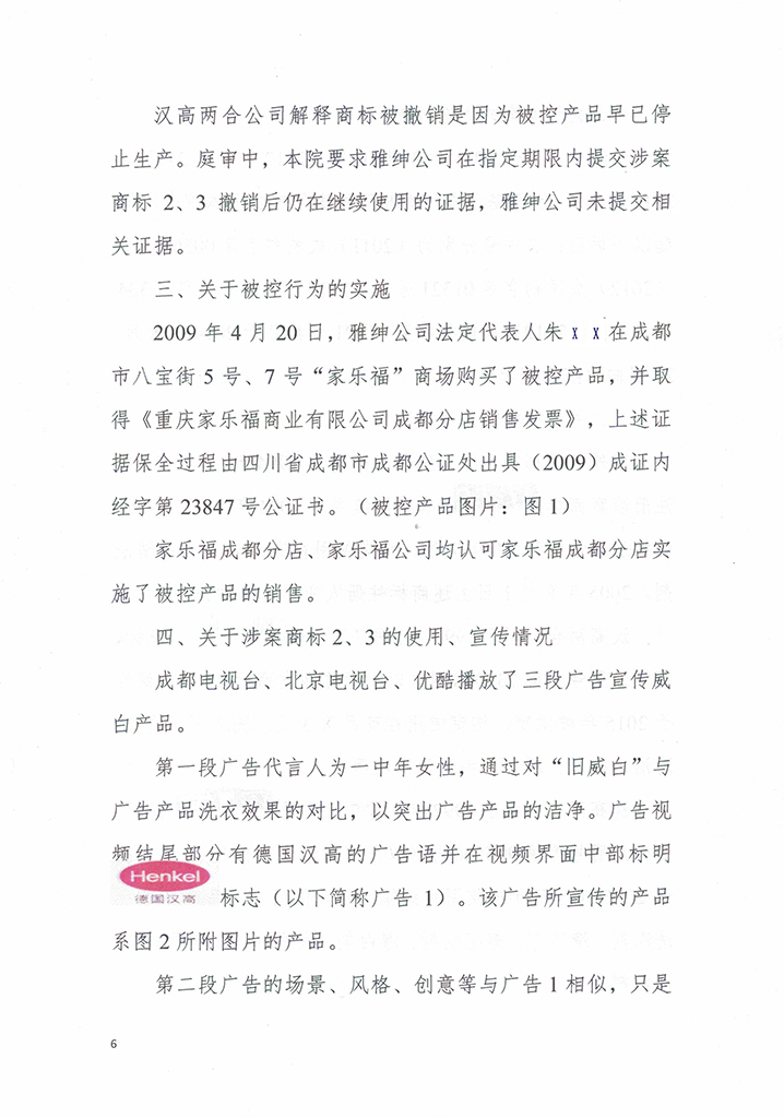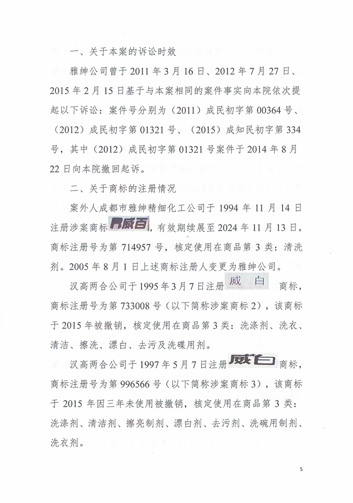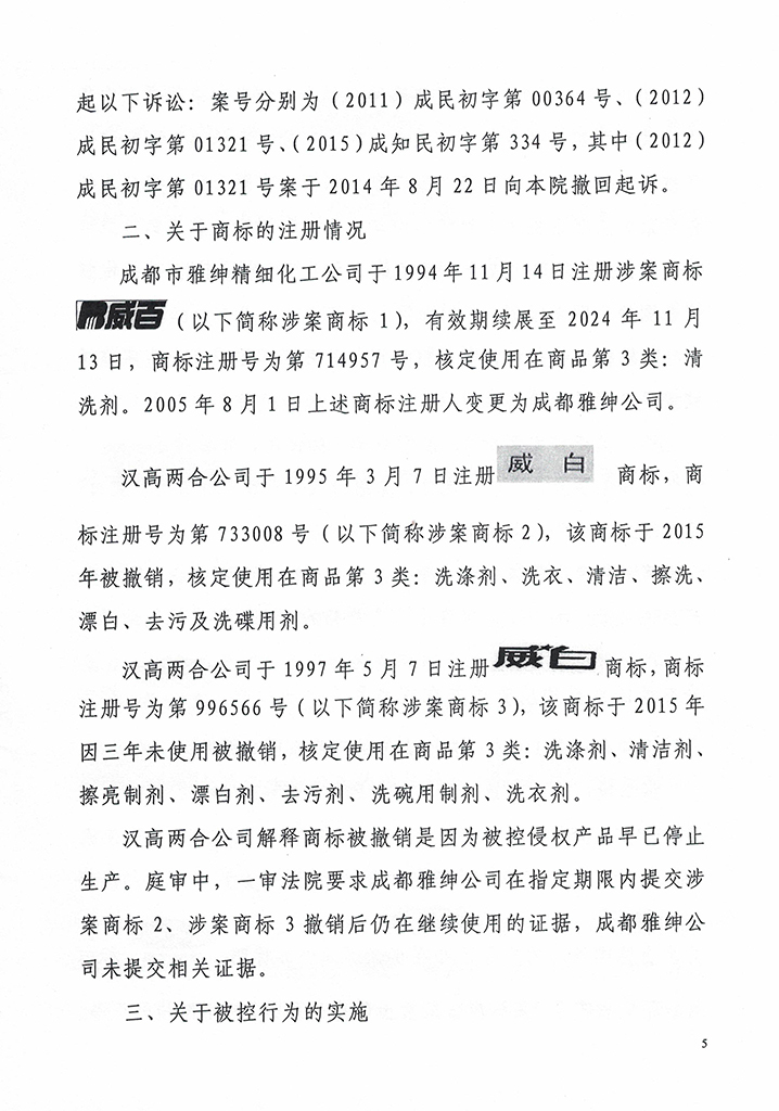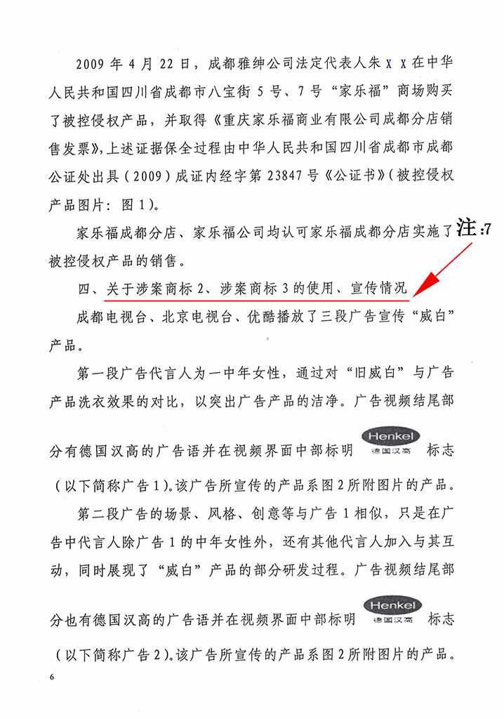 2015年,成都民营企业在成都市中级人民法院提起了对德国汉高股份有限两合公司(HenKeL AG & CO.KGaA)被控侵权产品“威白”商标的商标侵权纠纷诉讼。成都市中级人民法院于两年多后的2017年12月8日作出了“民事判决”,成都市中级人民法院《民事判决书》 (2015)成知民初字第334号,